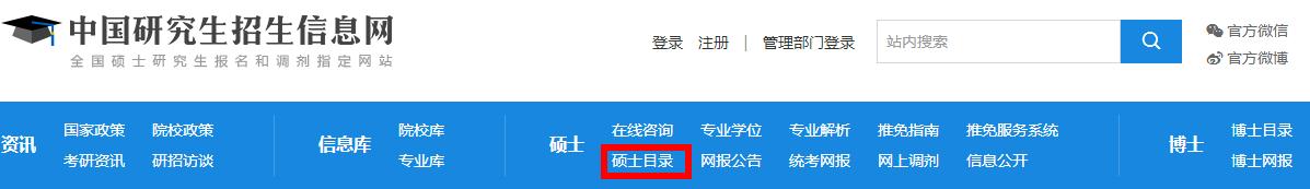 1.登錄官網(wǎng)“中國研究生招生信息網(wǎng)”,點(diǎn)擊上方“碩士專業(yè)目錄”,如圖: