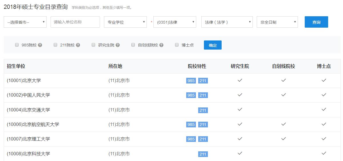 通過同等學(xué)力申碩招收法學(xué)專業(yè)的院校也比較多,大家可登錄官網(wǎng)“學(xué)位網(wǎng)”進(jìn)行查詢。