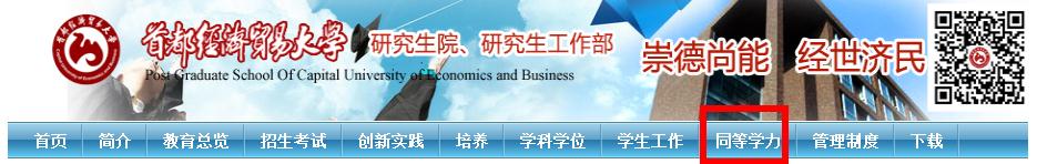 課程研修班報名網(wǎng)站:學(xué)校研究生院官網(wǎng)(如:首都經(jīng)濟(jì)貿(mào)易大學(xué)同等學(xué)力申碩,如圖)