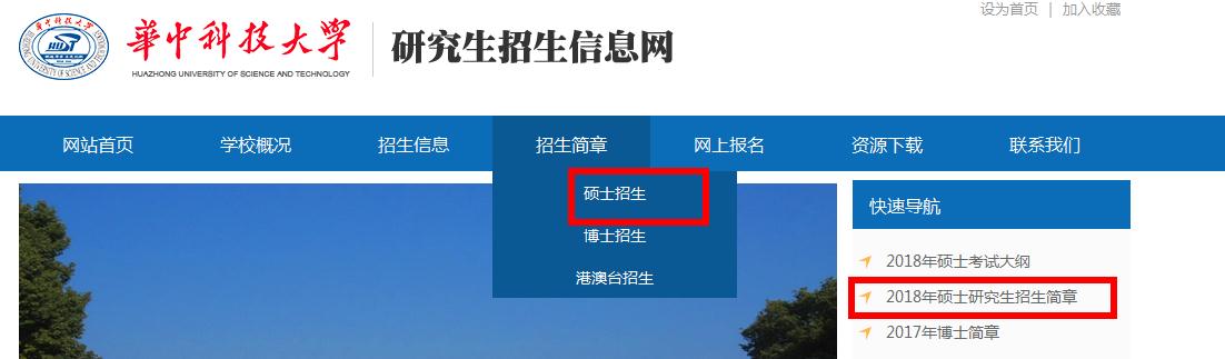 1.百度搜索“華中科技大學(xué)研究生院”,點(diǎn)擊“招生簡(jiǎn)章”如圖。