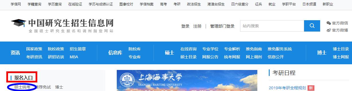 (1)登錄“研招網”,找到“報名入口”,點擊“碩士統考”,如圖: