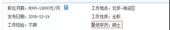 由此看來,企業對應聘者的學歷、學位要求也提升了,本科生想要找這樣的工作,只能提升自己的學歷、學位,否則面試機會都沒有。