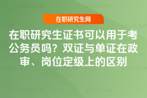 在職研究生雙證可完全用于考公,適配所有碩士學歷/學位崗位,政審材料完整,入職按碩士學歷定級(二十四級);單證僅適用于明確要求“碩士學位”的崗位,政審需額外提供本科材料,入職按原學歷定級。證書需官方認證,報考前需核對崗位學歷/學位要求,咨詢特殊規定。……