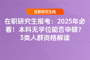 在職研究生報考,本科無學位者申碩情況因人群而異。本科無學位但工作經驗豐富者,同等學力申碩可上課但申碩受限,部分院校允許以發表論文等條件彌補。?飘厴I滿5年的職場深耕者,報考非全日制研究生有機會,?飘厴I滿5年或管理類滿2年可報考,復試可能加試。成人學歷背景的跨界從業者,非全日制報考與全日制本科同等待遇,但同等學力申碩不能申請學位!