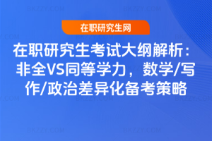 在職研究生非全與同等學力考試要求不同,考試大綱體現差異。非全覆蓋知識點廣且深,題型靈活;同等學力聚焦基礎理論,題型常規。備考時,數學上非全攻高等數學難點,同等學力抓初等數學基礎;寫作上非全強調邏輯深度,同等學力注重規范條理;政治上非全關注時政與理論延伸,同等學力掌握基礎理論!