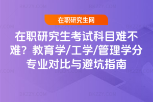 在職研究生考試科目難度因報(bào)考方式和專(zhuān)業(yè)而異。非全日制教育學(xué)考英語(yǔ)二和333教育綜合,初試通過(guò)率約30%,真題靈活;同等學(xué)力先學(xué)后考,申碩考教育學(xué)綜合和外語(yǔ),論述題需結(jié)合教學(xué)經(jīng)驗(yàn)。非全日制工學(xué)考英語(yǔ)二、數(shù)學(xué)二和專(zhuān)業(yè)課,數(shù)學(xué)計(jì)算類(lèi)題目多;同等學(xué)力申碩考專(zhuān)業(yè)基礎(chǔ)課和外語(yǔ),專(zhuān)業(yè)基礎(chǔ)課對(duì)跨專(zhuān)業(yè)者難。非全日制管理學(xué)考管理類(lèi)聯(lián)考和英語(yǔ)二,邏輯推理是新內(nèi)容;同等學(xué)力申碩考管理學(xué)綜合和外語(yǔ),案例分析需結(jié)合管理經(jīng)驗(yàn)。……