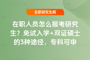 在職人員報考研究生主要有3種途徑。同等學(xué)力申碩,專科可免試入學(xué),先學(xué)知識拿結(jié)業(yè)證,本科有學(xué)位滿3年可申碩士學(xué)位證(單證),學(xué)費2-5萬元,適合想邊工作邊學(xué)習(xí)、?粕救國的人群。非全日制研究生,畢業(yè)獲雙證,管理類?飘厴I(yè)滿5年、本科滿3年報考,非管理類專科滿2年、本科應(yīng)往屆可報。中外合作辦學(xué)碩士,免統(tǒng)考,申請入學(xué),畢業(yè)獲國外院校學(xué)位證經(jīng)認(rèn)證等同雙證,部分項目專科可申,適合想獲國際背景者!