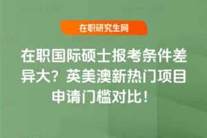 在職國際碩士報考條件在英美澳新四個熱門留學國家差異較大。英國注重工作經(jīng)驗與學術銜接,本科需相應學位,?菩5年以上工作經(jīng)驗,語言有雅思等要求,部分有職業(yè)資格加分。美國強調學術能力與職業(yè)成就,本科需一定GPA,?粕暾堧y,工作經(jīng)驗和文書要求高,語言要求也高。澳大利亞靈活度高,本科無經(jīng)驗可申,?菩柘嚓P工作經(jīng)驗,語言可豁免,有橋梁課程等。……