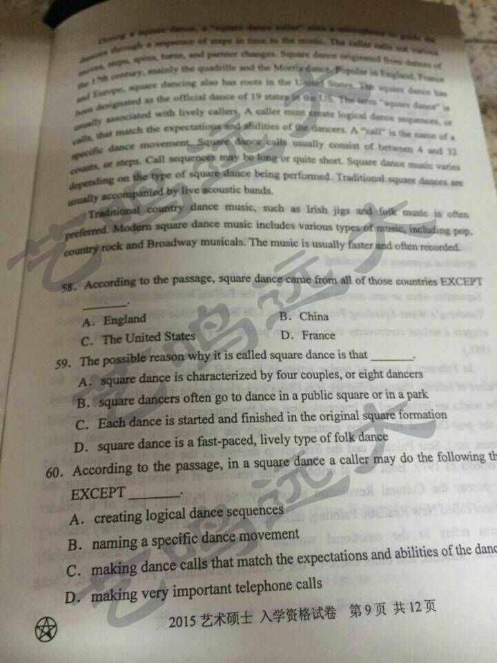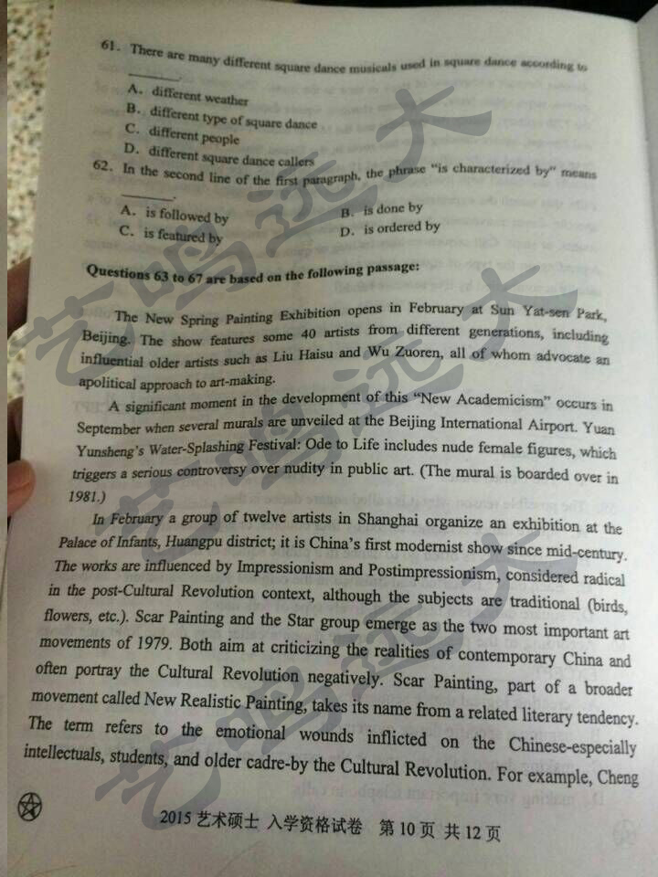 2015年10月在職藝術碩士MFA聯考真題及答案已經公布,詳情如下: