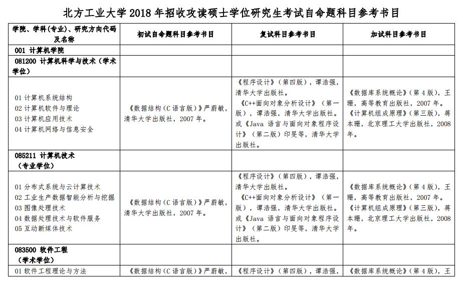 2018年北方工業大學非全日制研究生專業目錄已經公布,下面是學校自命題科目參考書目介紹: