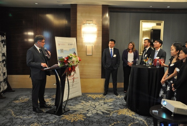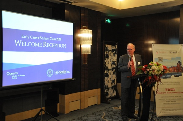 近日中國人民大學(xué)-加拿大女王大學(xué)金融碩士項(xiàng)目(人大女王金融碩士項(xiàng)目)青年國際班開學(xué)典禮在四季酒店舉行。2017年9月入學(xué)的新生,中國人民大學(xué)漢青經(jīng)濟(jì)與金融高級(jí)研究院(漢青研究院)院長助理邱志剛教授,Stuart McDonald教授,國際教育中心主任張震,加拿大女王大學(xué)史密斯商學(xué)院(史密斯商學(xué)院)院長David Saunders博士,金融碩士項(xiàng)目主任王煒教授,副主任Kerri Reagan,項(xiàng)目工作人員,加拿大駐華使館商務(wù)參贊、安大略省政府代表宋毅軍博士,中加貿(mào)易理事會(huì)(CCBC)代表等貴賓一同出席了當(dāng)天的典禮。