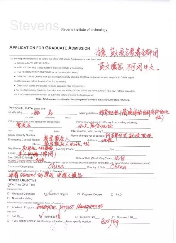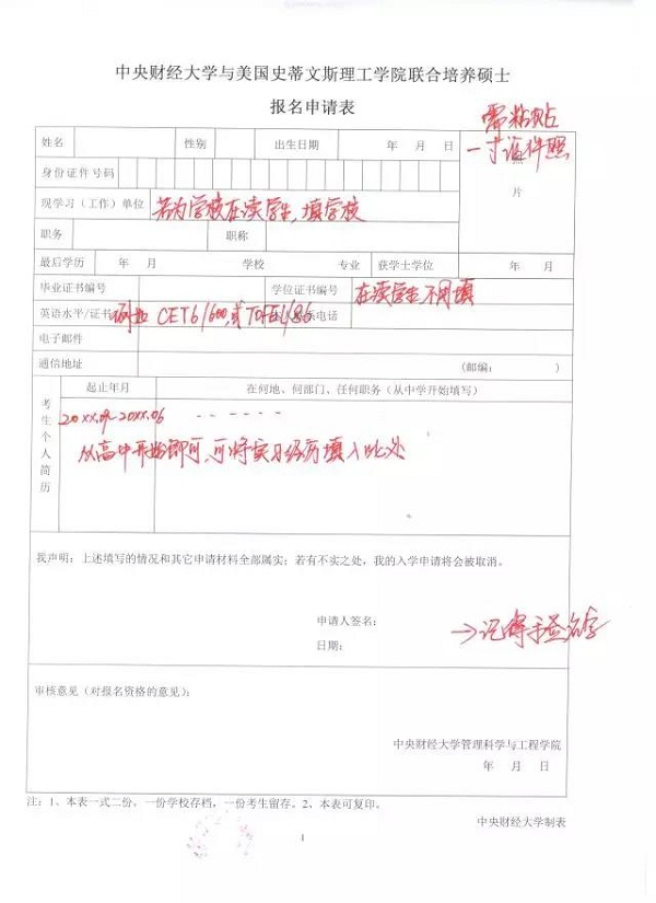 中財史蒂文斯聯(lián)合培養(yǎng)碩士項目報名申請表填寫具體如下: