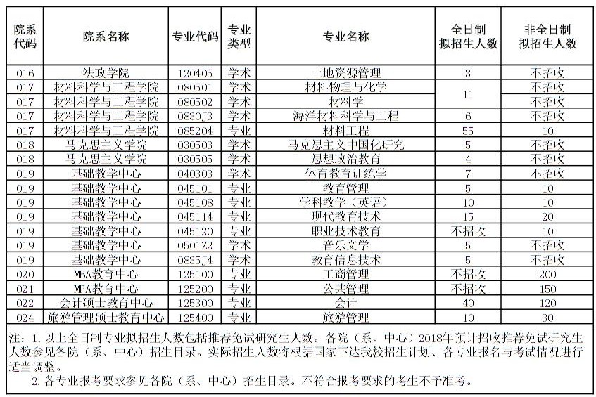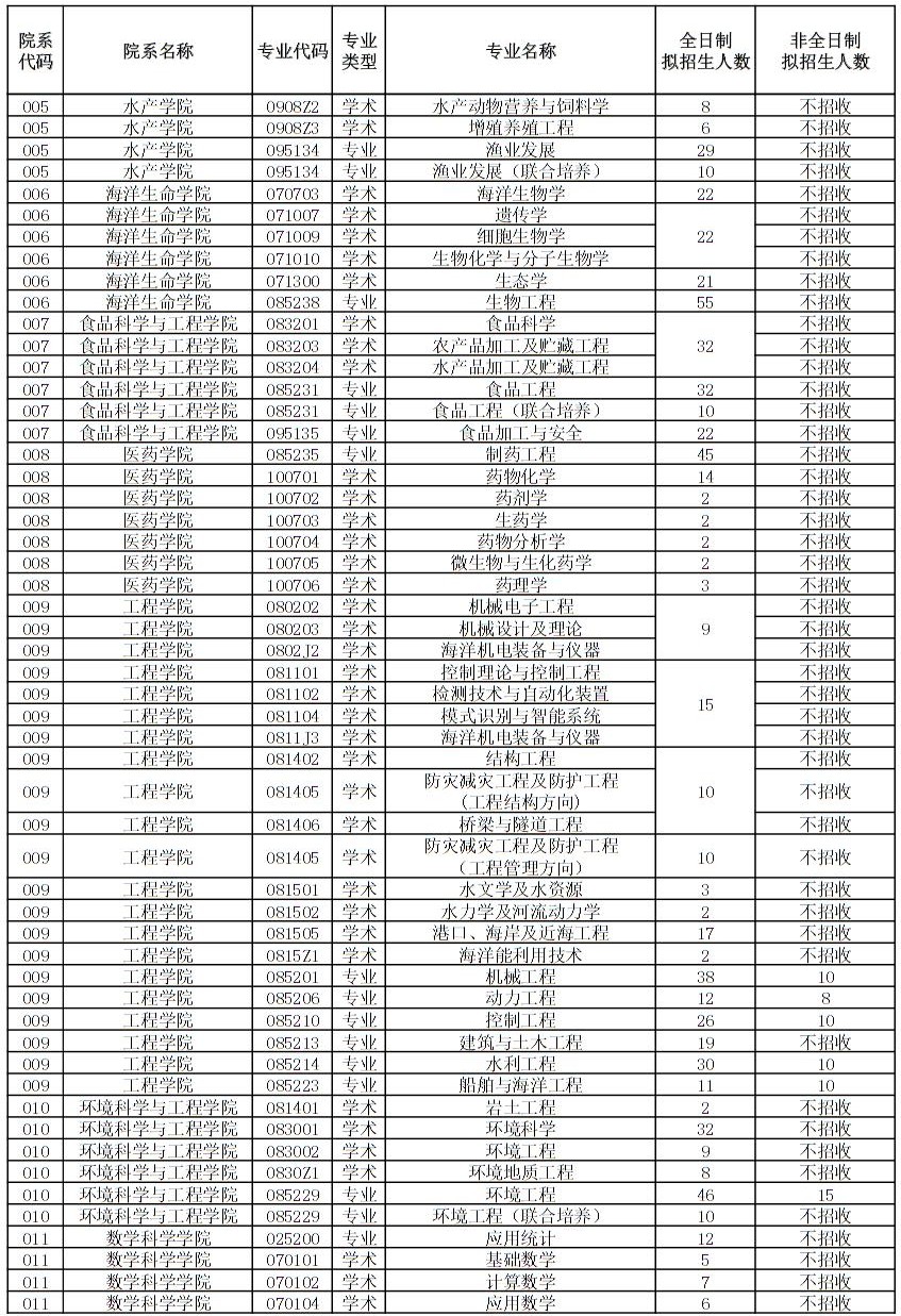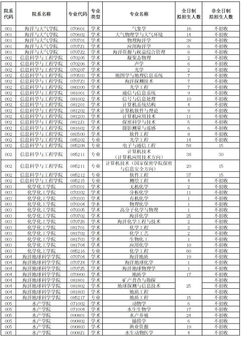 2018年中國海洋大學非全日制研究生招生專業目錄