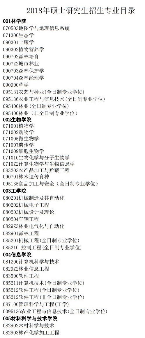 2018年北京林業(yè)大學(xué)非全日制研究生招生專(zhuān)業(yè)目錄已經(jīng)公布,詳情如下: