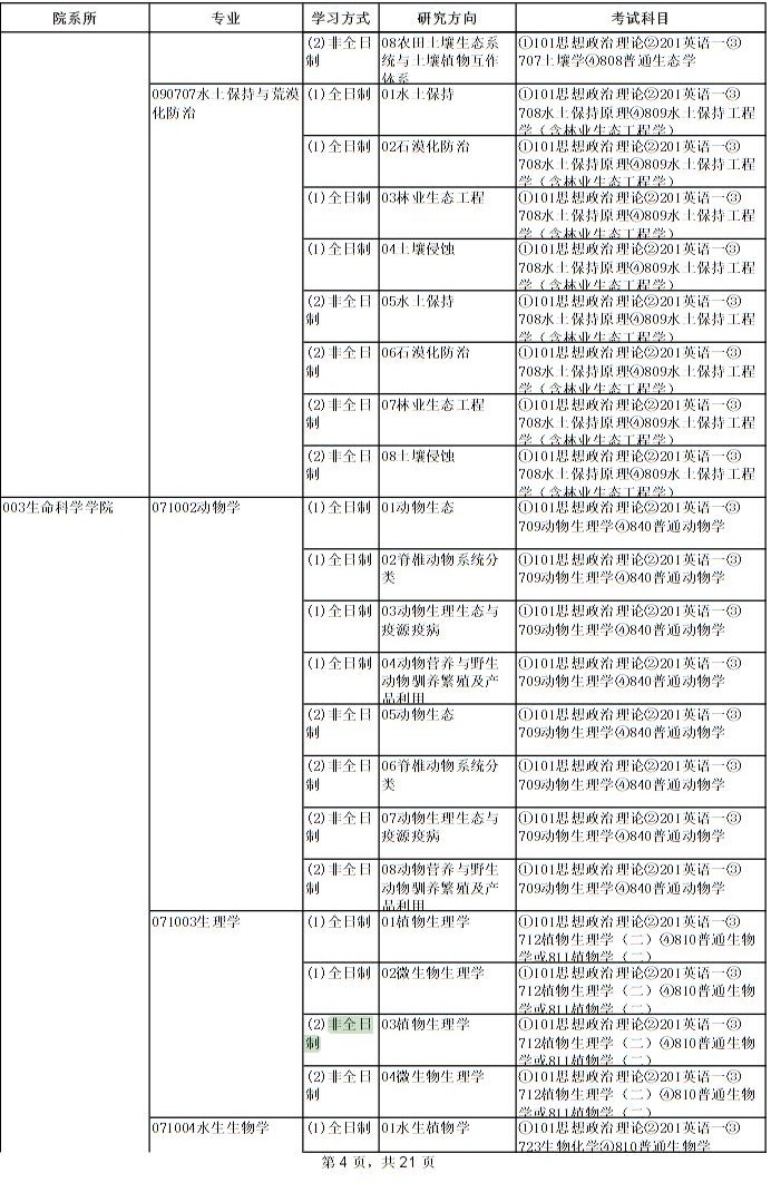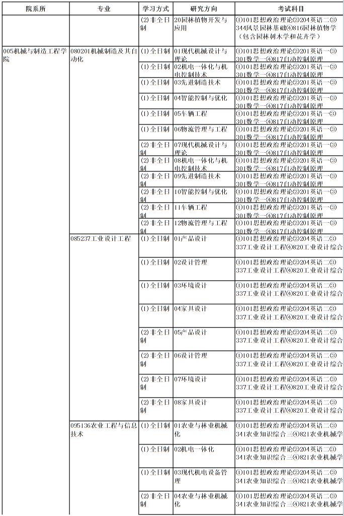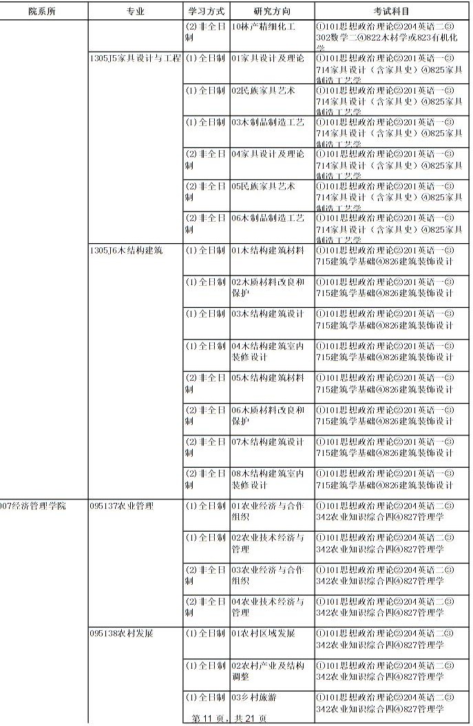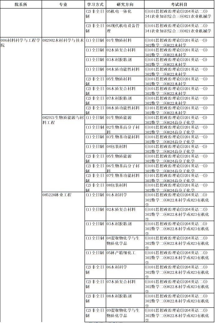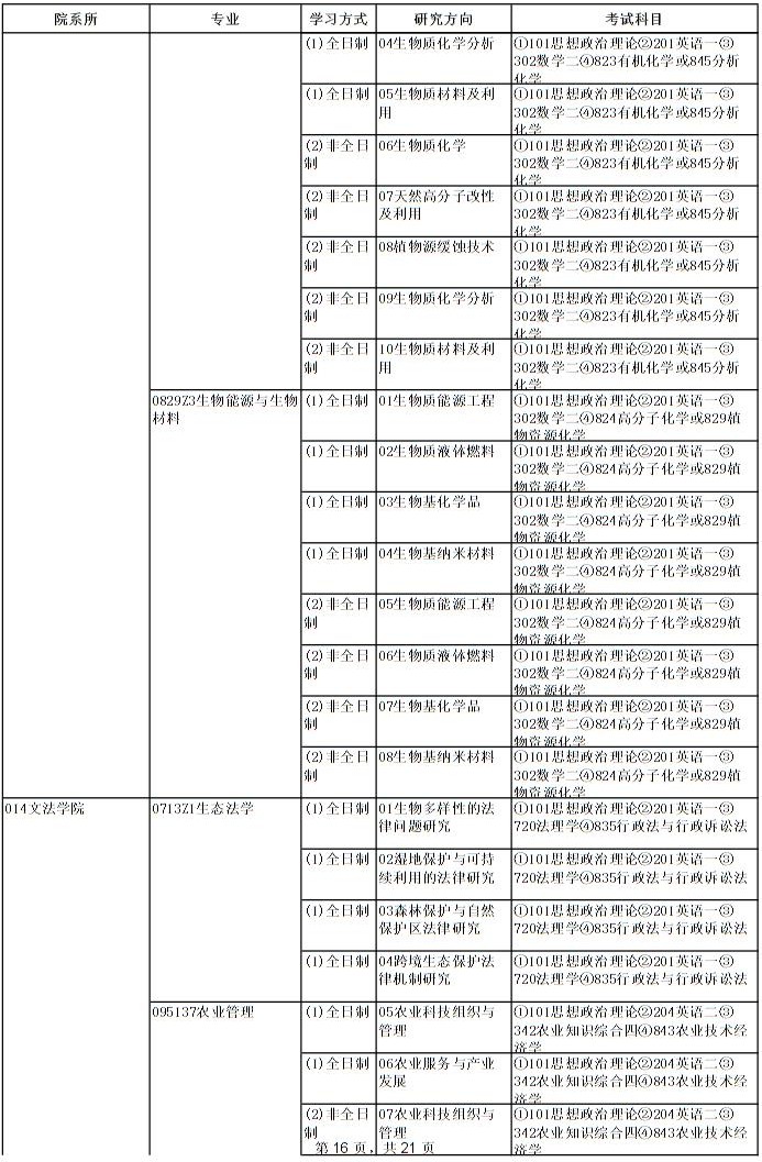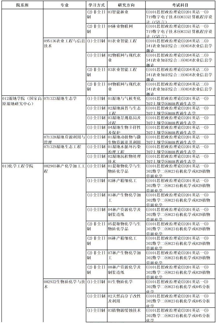 | 001林學院 | 095400林業 | 2)非全日制 | 08自然保護區與森林植物 | ①101思想政治理論②204英語二③345林業基礎知識綜合④804森林培育學 |