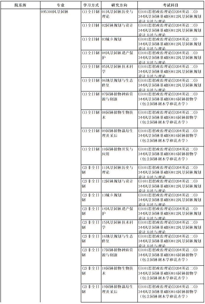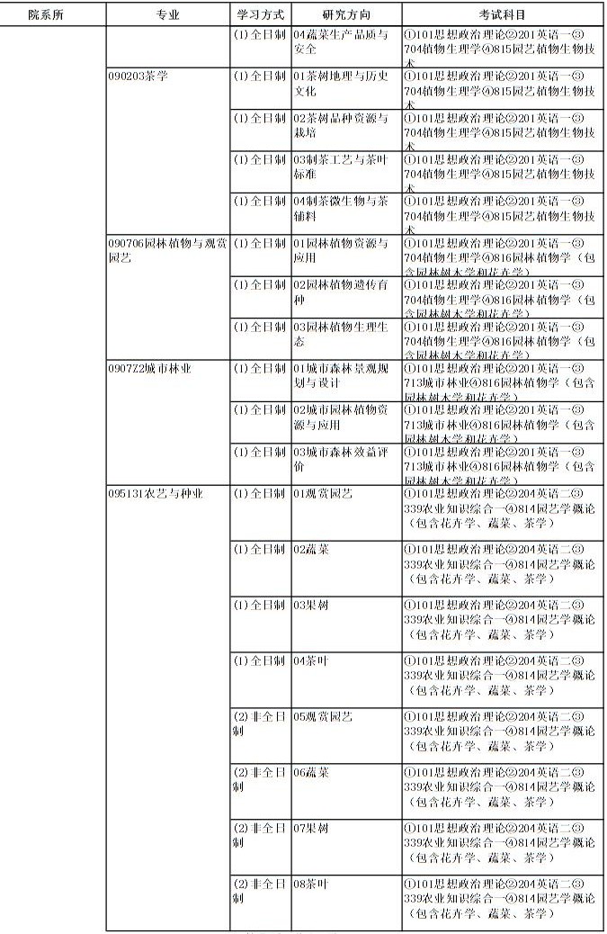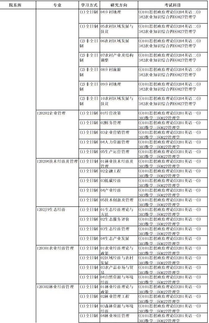 | 12經濟林培育 | ①101思想政治理論②204英語二③345林業基礎知識綜合④804森林培育學 | |||