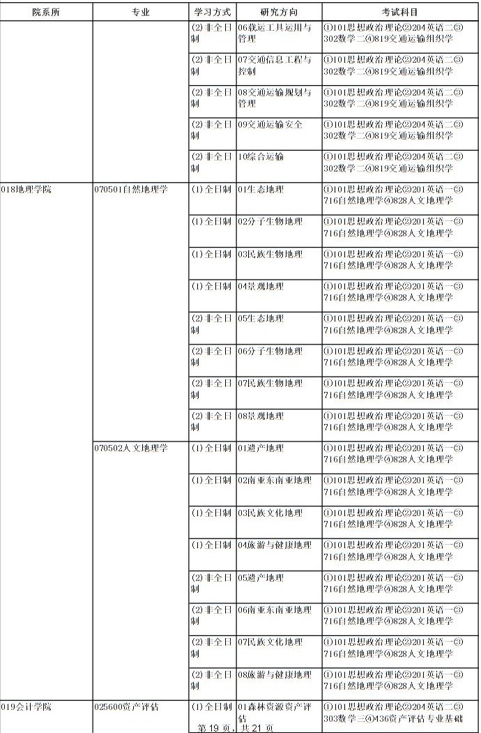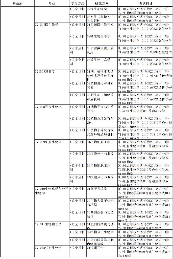院系所 | 專業 | 學習方式 | 研究方向 | 考試科目 |