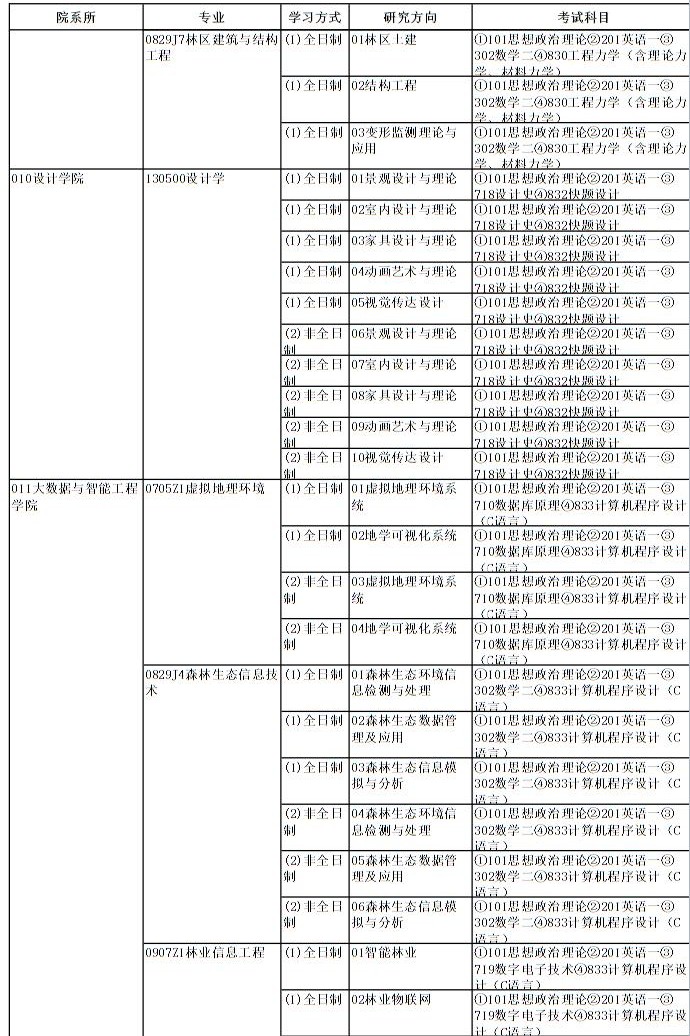 10數字林業 | ①101思想政治理論②204英語二③345林業基礎知識綜合④804森林培育學 | |||
