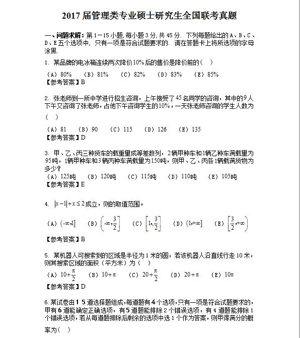 2017EMBA管理類聯考綜合真題及參考答案(完整版),僅供參考: