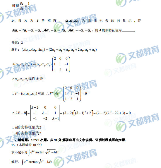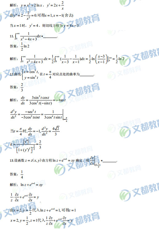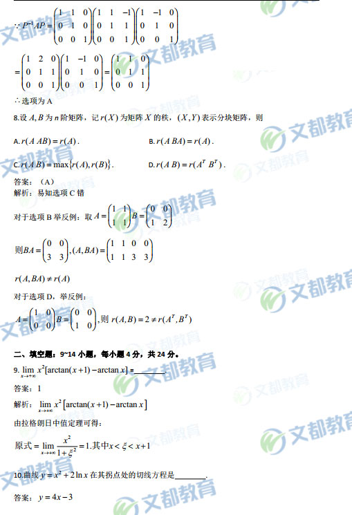 2018年非全日制研究生數學二真題及參考答案(完整版)