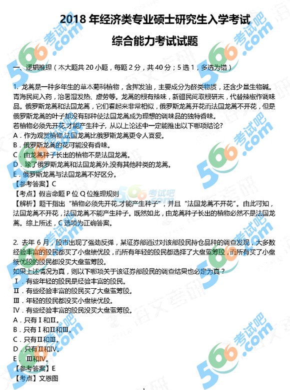 2018年非全日制研究生全國統一初試考試經濟類聯考綜合真題及參考答案(完整版),詳細內容如下: