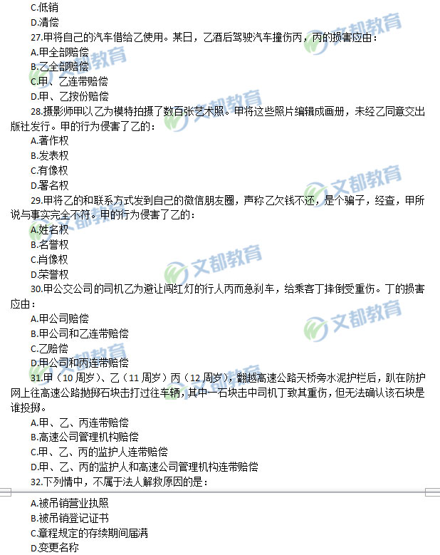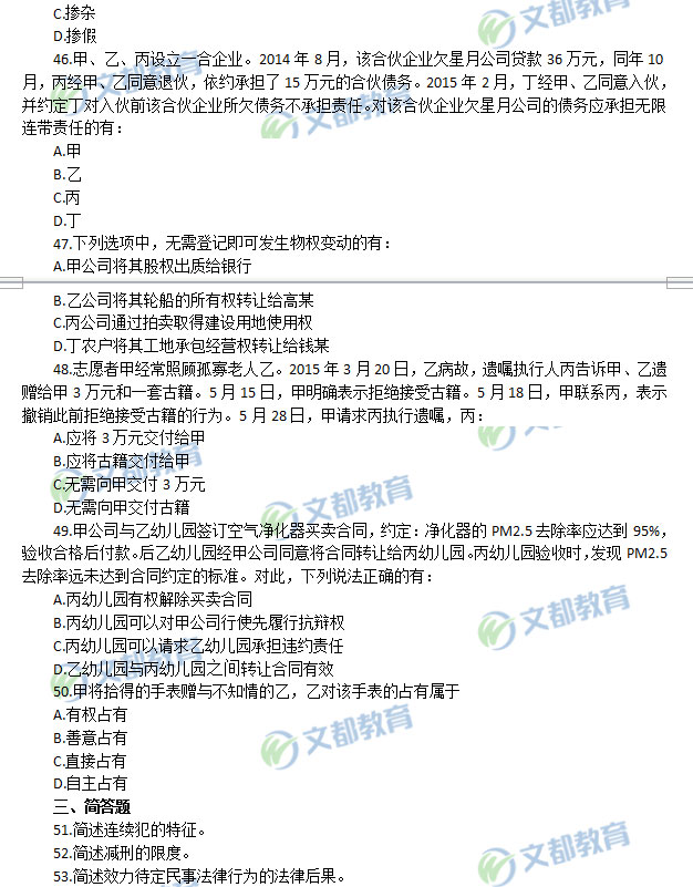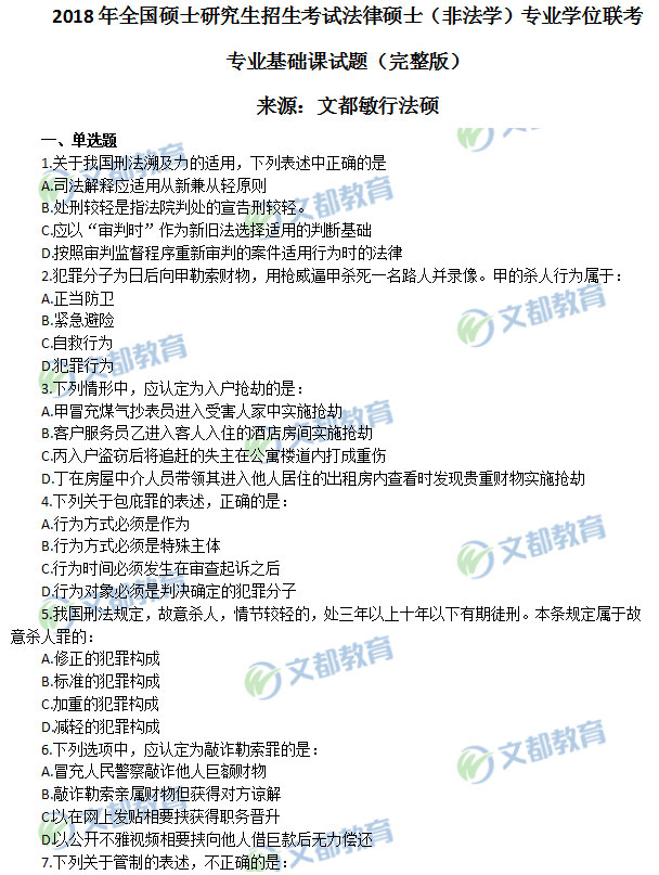 2018年非全日制研究生全國統一初試考試法碩(非法學)真題(完整版),詳細內容如下: