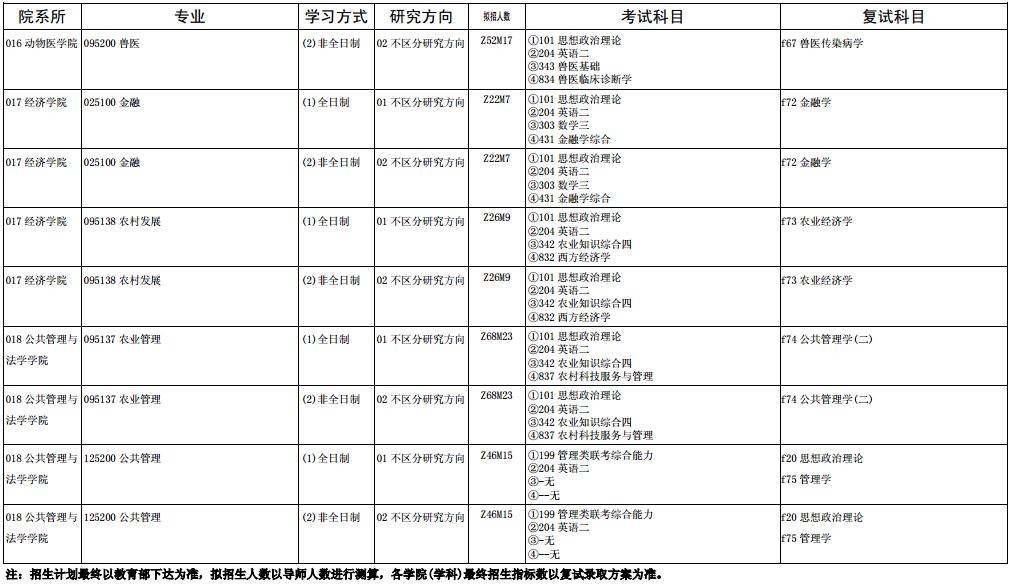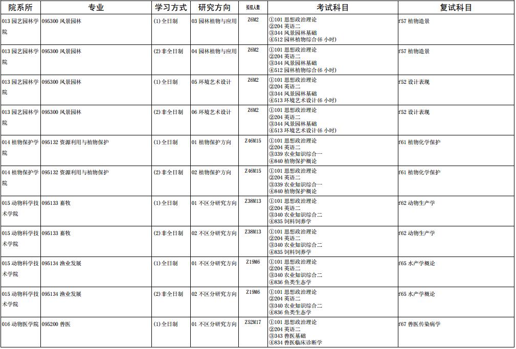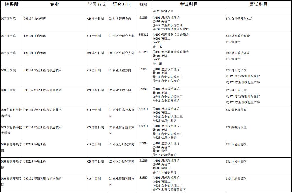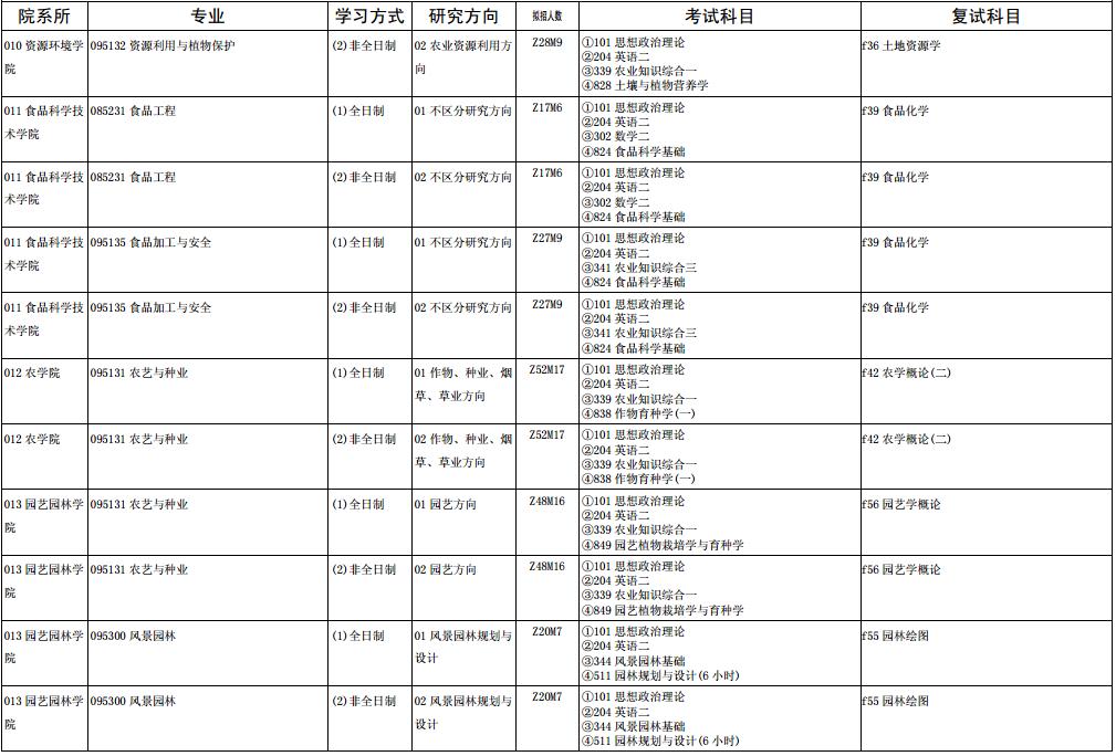 2018年湖南農業大學非全日制研究生招生專業目錄