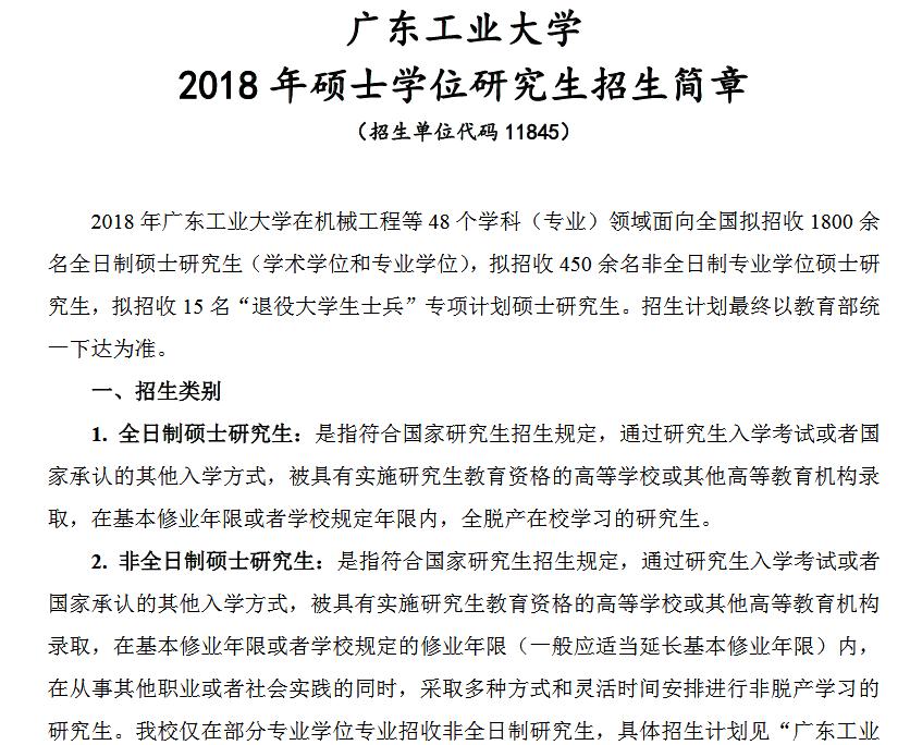 2018年廣東工業大學非全日制研究生招生簡章已經發布,詳情如下: