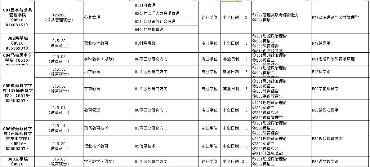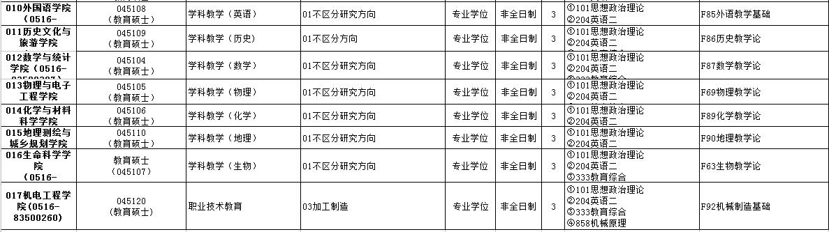 2019年江蘇師范大學非全日制研究生招生專業目錄