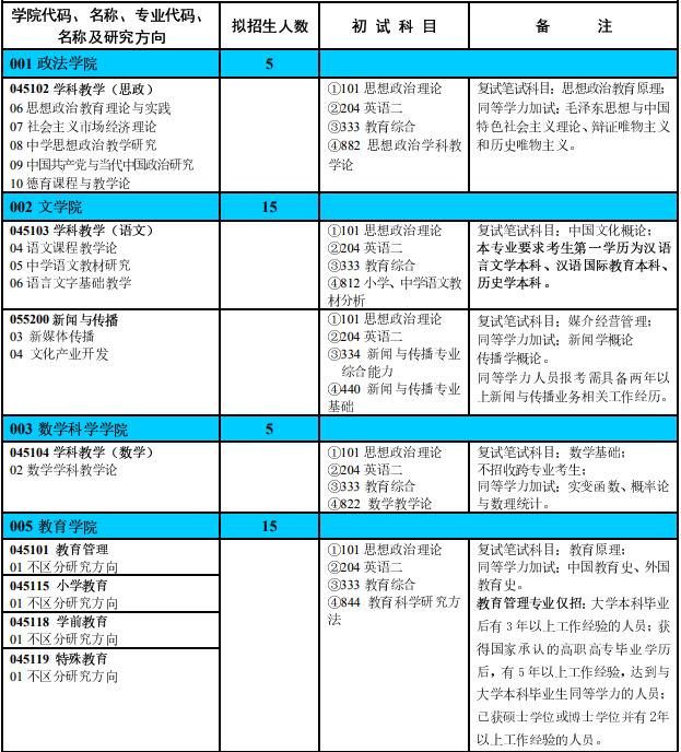 2019年淮北師范大學非全日制研究生招生專業目錄