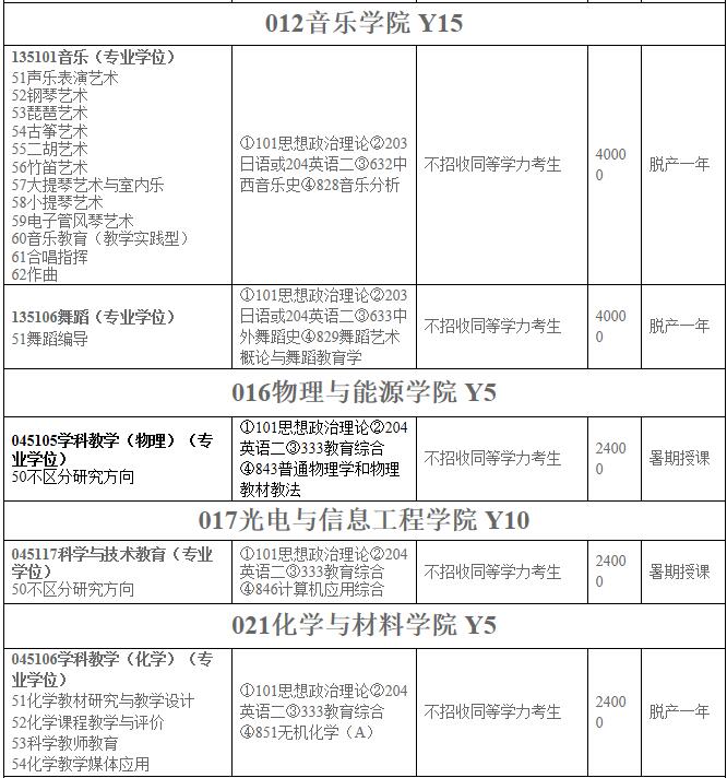 2019年淮北師范大學非全日制研究生招生專業目錄