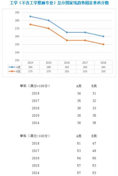 想知道自己通過考試的幾率有多大,下面為大家整理了2014-2018年各專業分數線及趨勢圖。
