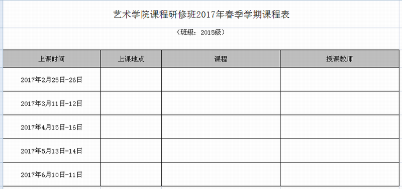 人大在職研究生藝術學院2015級課程研修班2017年春季學期授課時間已經確定,具體安排如下:
