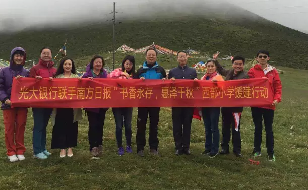 得知這個消息后,光大銀行深圳分行聯手南方日報深圳辦事處,發起“書香永存,惠澤千秋——西部小學援建行動”。該活動得到了中國人民大學商學院EMBA1505班、元培學堂和安博檢測股份有限公司大力支持。在此次活動中,光大證券、光大永明保險、光大信托、光大金控、光大期貨、光大環保、光大能源等光大集團各機構的駐深圳單位也積極參與捐款捐物,活動啟動僅兩周,就募集各類捐款40萬元,參與捐款的各界愛心人士達到26000多人,既是一次愛心的大匯聚,也是一輪愛心的大傳播。