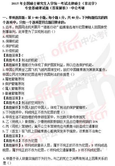 2017年雙證在職研究生法碩(非法學)真題及答案解析: