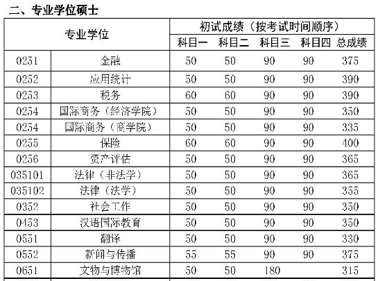 2017年中國人民大學雙證在職研究生(非全日制)復試分數線公布,具體內容如下: