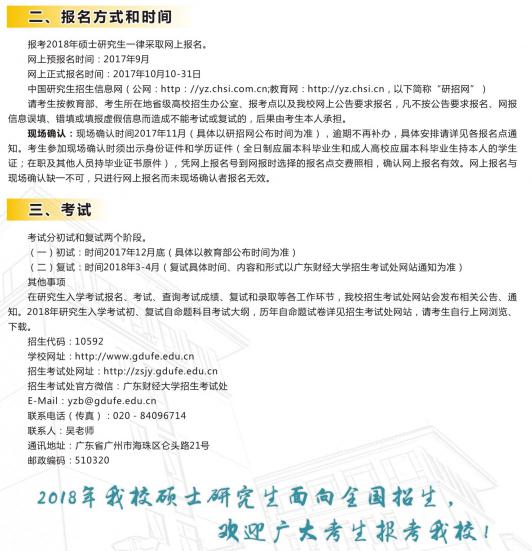 2018年廣東財經大學雙證在職研究生(非全日制)招生簡章
