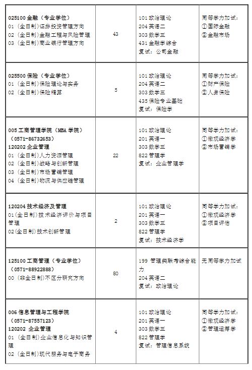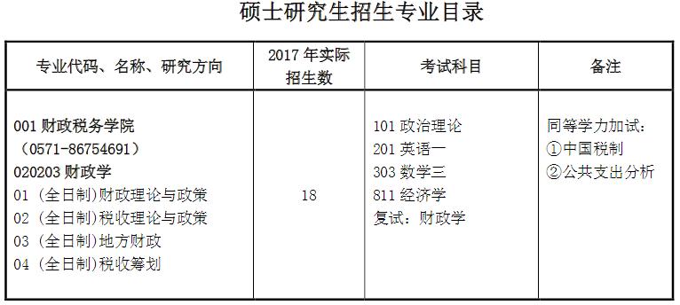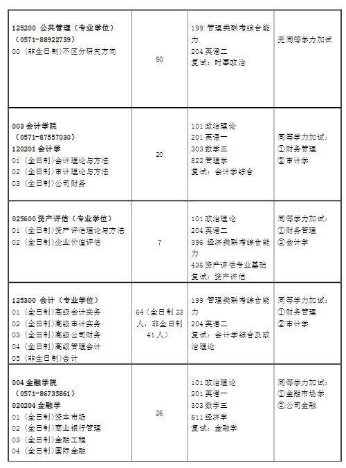 2018年浙江財經大學雙證在職研究生(非全日制)專業目錄