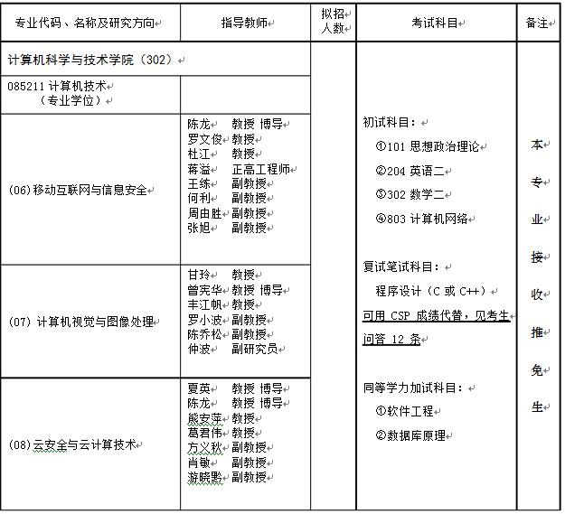 2018年重慶郵電大學(xué)計算機(jī)科學(xué)與技術(shù)學(xué)院雙證在職研究生(非全日制)專業(yè)目錄,具體如下: