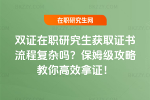 雙證在職研究生報名流程關鍵節點有三。報名階段,10月在研招網網報,選“非全日制”,11月中上旬完成現場或網上確認。考試階段,12月底統考,次年3-4月復試,成績決定錄取。錄取入學階段,5-6月發錄取通知,完成調檔政審后繳費入學。……
