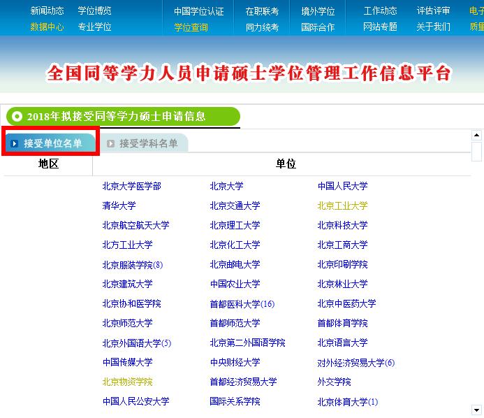 1.如果想知道自己想報考的院校有哪些專業,可選擇“接受單位名單”,如圖。