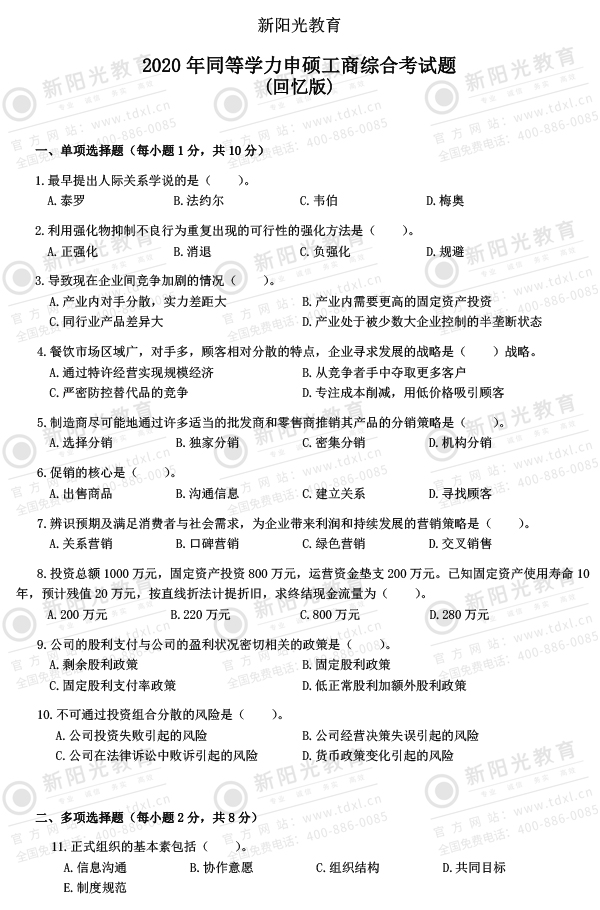 2020同等學(xué)力申碩考試及已經(jīng)結(jié)束,同學(xué)們很關(guān)心自己的考試情況。下面,小編為同學(xué)們整理一下2020同等學(xué)力工商綜合真題及答案,提供給同學(xué)們參考!