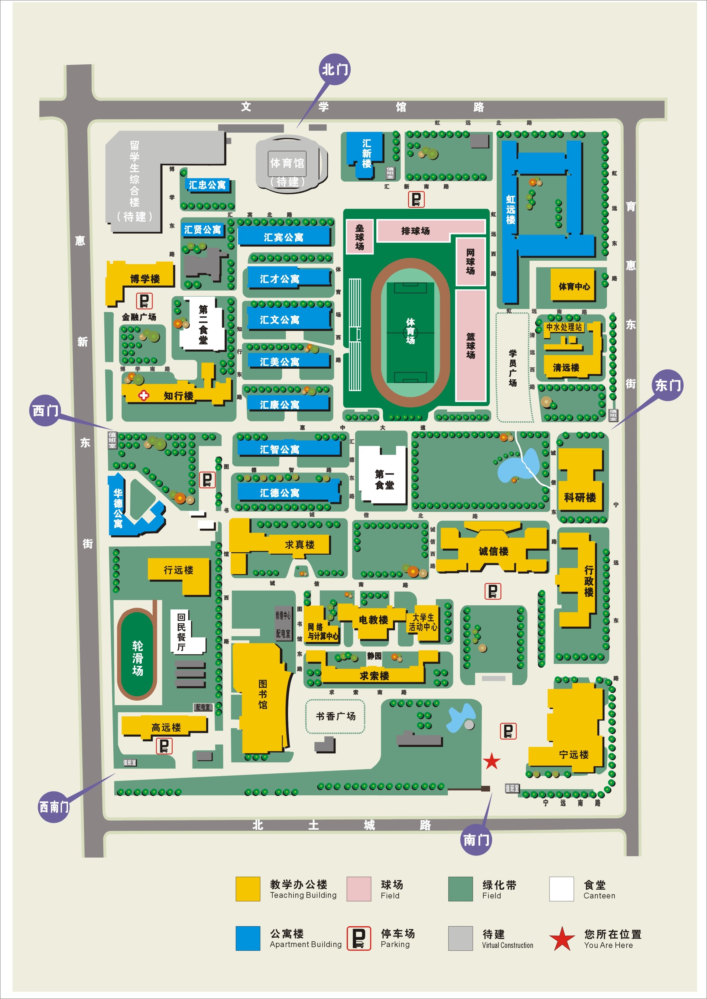 西校門有62路、409路、807路、422路、847路、406路、713路、419路、361路、18路、379路等公交車,您搭乘任意一路,均可順利到達我校。