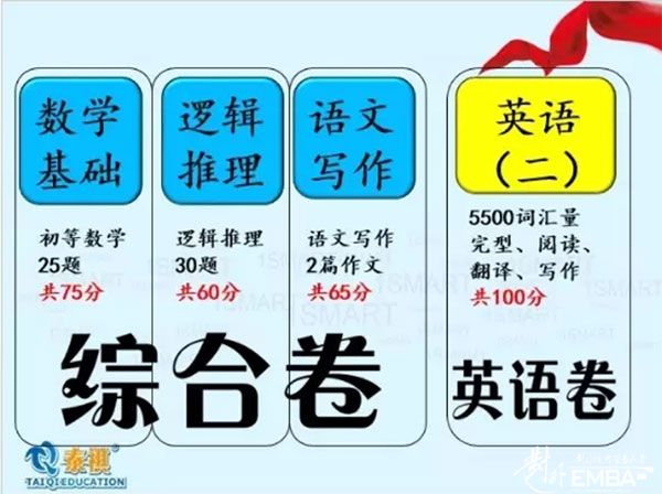 首先,你需要大致了解下EMBA聯考(即全國碩士研究生招生考試)內容