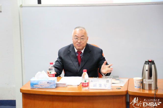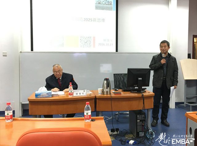 2016年10月27日,顧雛軍先生為對外經濟貿易大學EMBA/MBA校友帶來了主題為《引資購商:中國制造2025新思維》的精彩講座。講座由對外經濟貿易大學國際商學院EMBA中心陳勝軍主任主持,國際商學院副院長錢愛民教授受邀出席。百余名校友慕名而來,現場座無虛席,少有的出現門口也擺滿加座的盛況,報告開始時已經連門口的加座都不夠用了,教室最后排也站滿了人,很多校友堅持站著聽完整場講座。