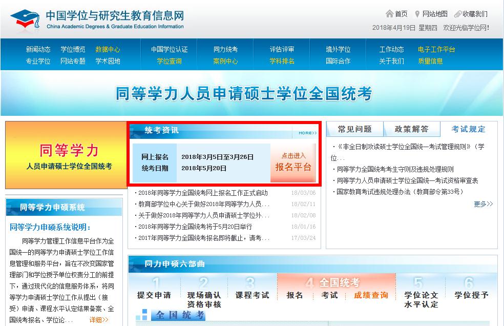報名入口:中國同等學力人員申請碩學位管理工作信息平臺(如圖)